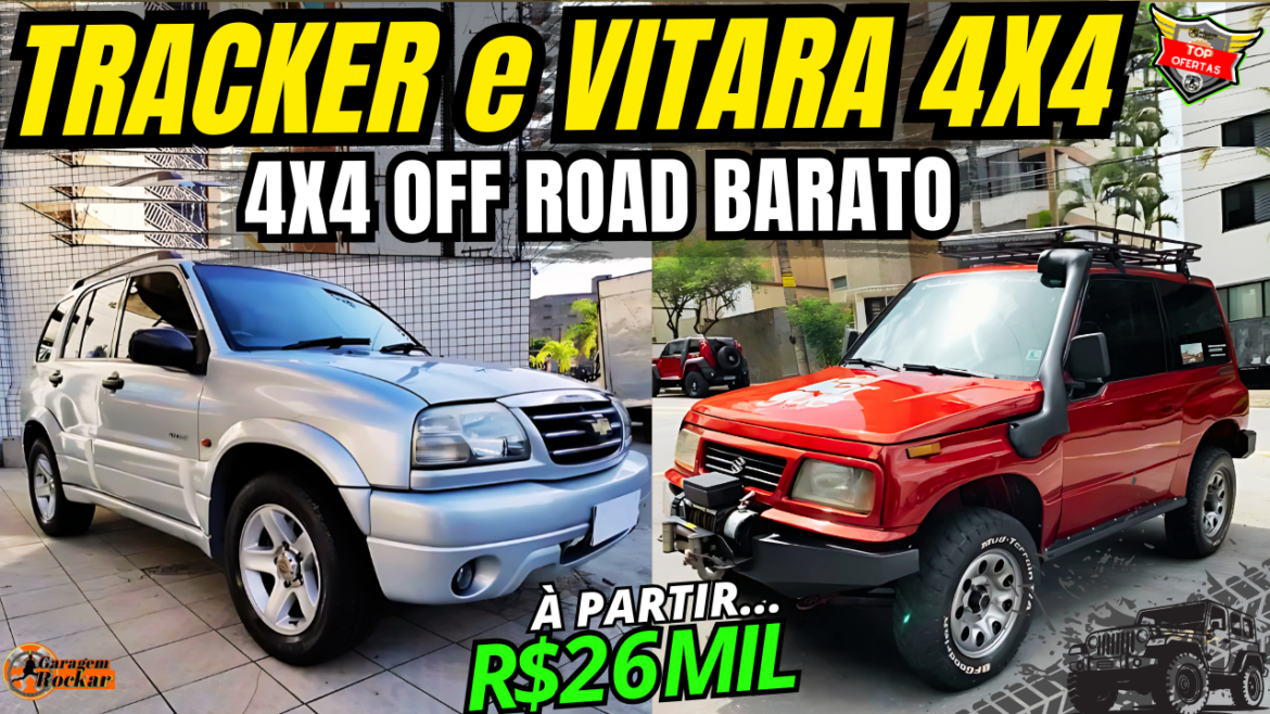 Dia de 4×4 raiz no Rockar, off road barato, Chevrolet Tracker 4×4 e Suzuki Vitara 4×4 a venda com preços à partir de 26 mil reais!