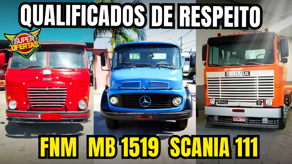 Teremos modelos de Mercedes Benz Mb 1519, Fenemê FNM Fiat 210 e Scania 111 Jacaré e Scania Lk 141 V8, caminhões clássicos em bom estado de conservação a venda aqui nas top ofertas do Garagem Rockar.