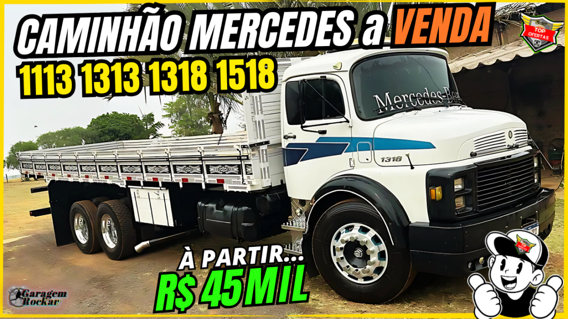 Black Friday do Garagem Rockar com ofertas de caminhão Mercedes Benz barato a venda, na carroceria e caçamba, preço à partir de 45 mil reais!Bora amigos, hoje tem boas ofertas de caminhão pra trabalho da linha Mercedes, teremos modelos de caminhão carroceria de madeira e caçamba, entre os modelos teremos Mb 1113, Mb 1313, Mb 1513, Mb 1318 e Mb 1518!