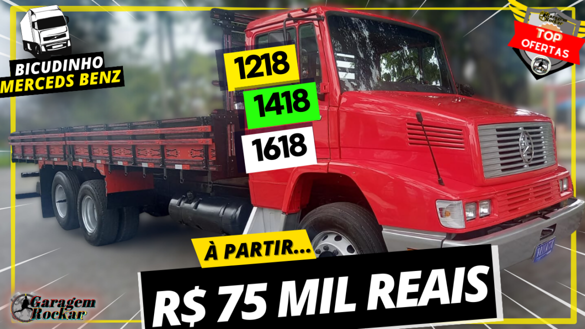 Hoje nas top ofertas do rockar, vamos conferir ofertas de caminhão Mercedes Benz a venda com preços à partir de 75 mil reais! Tem modelos de MB1218, MB1418 e MB1618, alguns no chassi, carroceria de madeira e baú fechado, no toco e truck. Se você busca um caminhão qualificado pra trabalhar na pega de frete, confere o vídeo até o final pra ver as ofertas de caminhão qualificado da série 1218, 1418 e 1618 da Mercedes Benz.