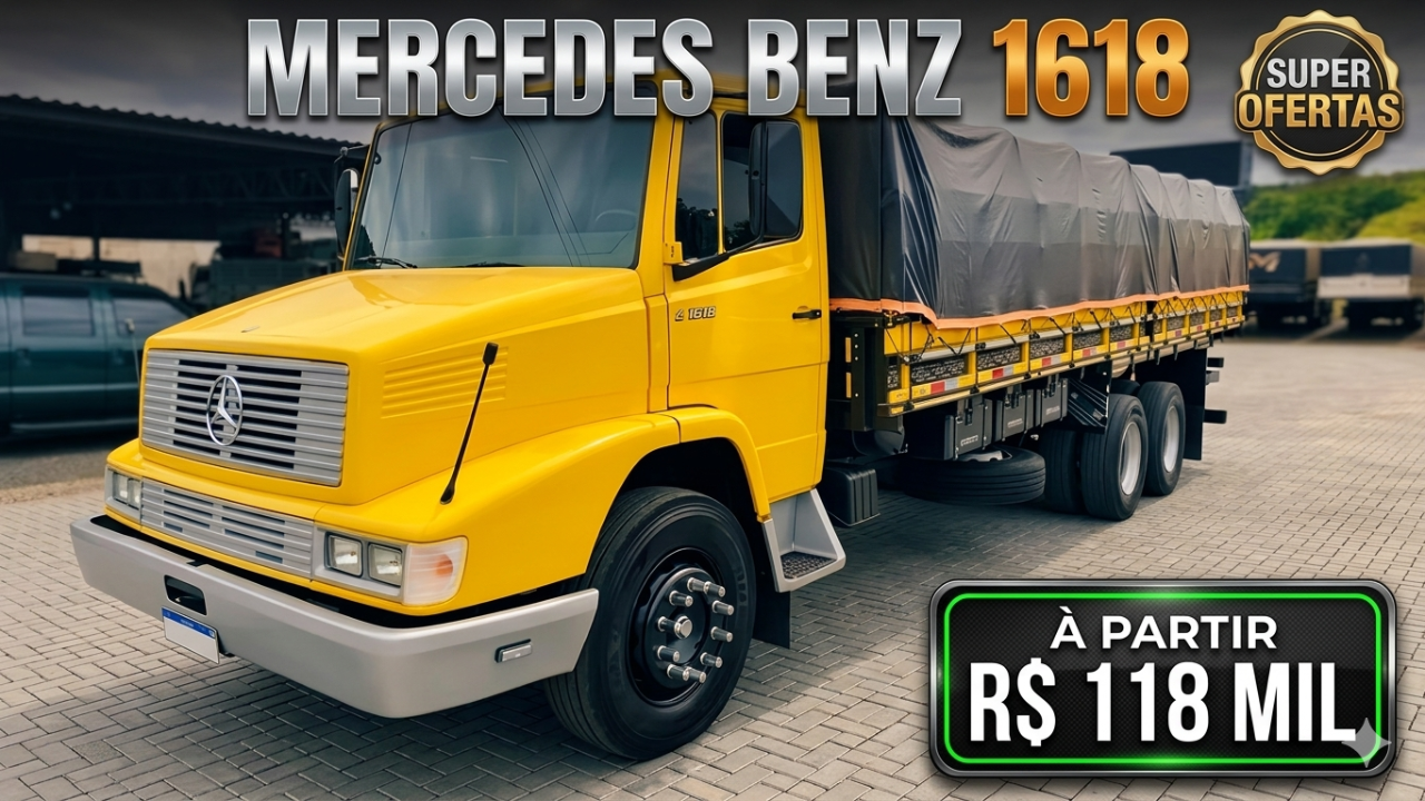 Top ofertas com caminhão Mercedes Benz 1618 truck na carroceria de madeira e carroceria graneleira, a venda com preços à partir de 118 mil reais!