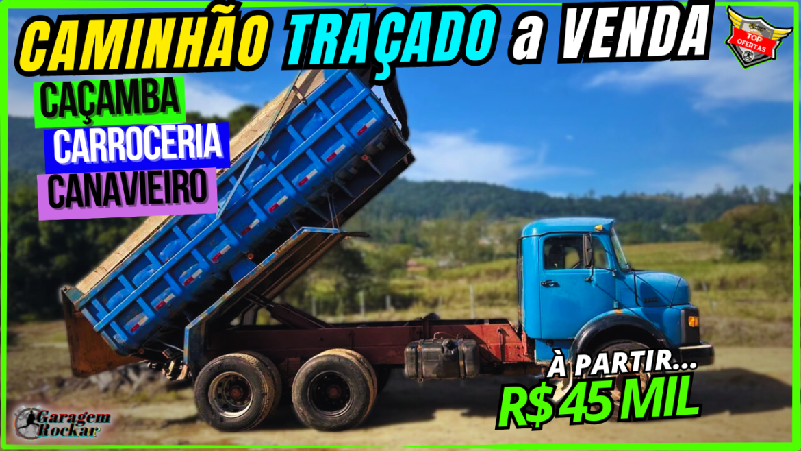 Top ofertas do Rockar com caminhão traçado a venda barato, canavieiro, caçamba e carroceria, à partir de 45 mil reais!