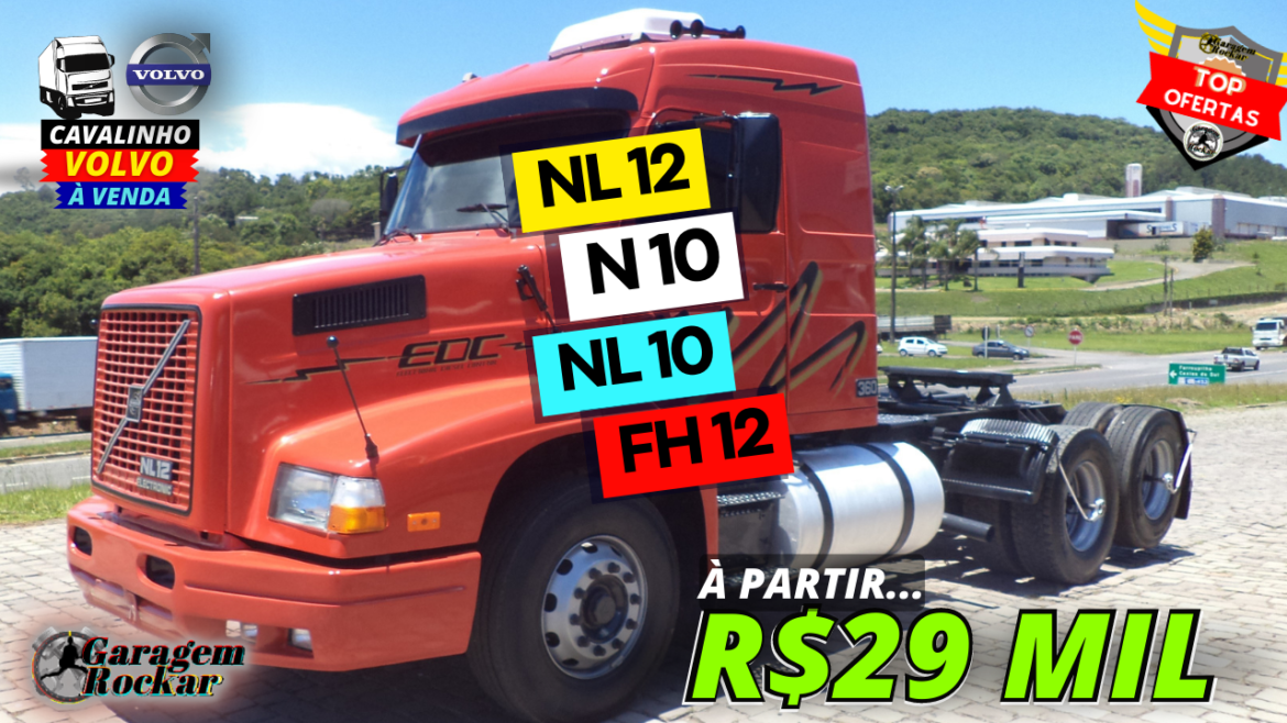 Está procurando um cavalinho Volvo pra comprar? Nas top ofertas do Rockar de hoje, selecionamos modelos de Volvo NL10, N10, NL12 e FH 12, toco e trucado, com preços à partir de 29 mil reais! Um ótimo caminhão pra trabalho e grande rival do conceito Scania. Entre as motorizações, teremos modelos da linha NL340, 380, NL360, e teremos uma FH12 380 cara chata Globetrotter. Os cavalinhos mecânicos, são de Volvo antigo, mas ainda assim um caminhão muito indicado pra fazer frete, seja no basculante, graneleira ou baú, um caminhão barato e muito indicado pra trabalho pesado.