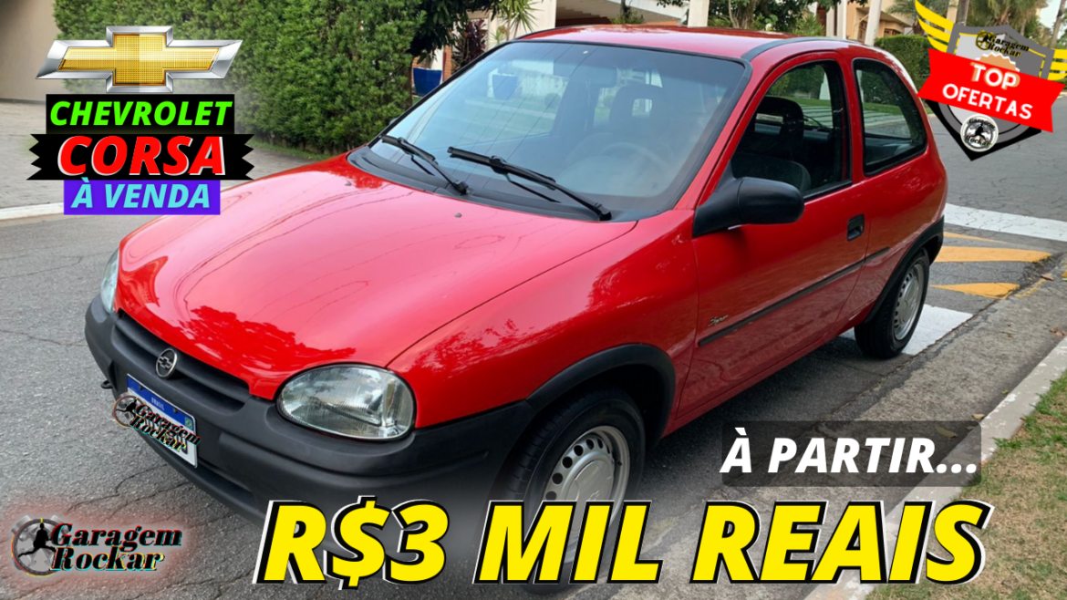 Top ofertas de Chevrolet Corsa! Sucesso total! Foquei em carros baratos pra quem está querendo sair do busão ou comprar o primeiro carro, o corsinha é muito indicado, é um carro mais antigo, mas ainda hoje é fácil de manter e é econômico! Top em tudo! Vamos ter preços à partir dos 3500 reais! Mas precisa de dar uma ajeitada aqui outra ali, se quiser pegar um todo em dia, tem que tirar o escorpião do bolso e pagar uns 8 mil no mínimo! Pois é meus amigos, quer moleza senta no pudim! Sem choro!