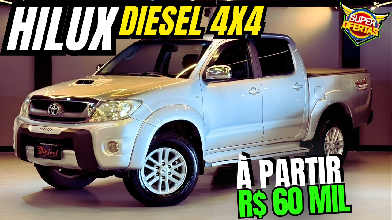 Top ofertas atualizadas de Toyota Hilux diesel 4×4 a venda à partir de 60 mil reais!