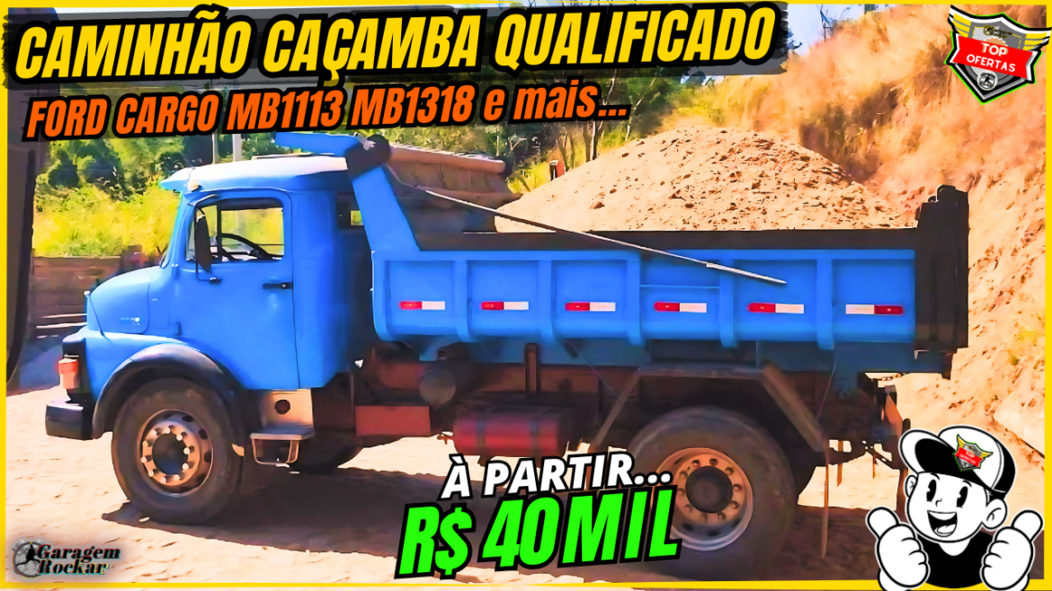 Hoje tem muriçoca Mb 1113, Mb 1318, Fordão, Chevrolet D11000 e até Ford Cargo 4532 na listagem, todos caminhões em bom estado e na caçamba basculante, modelos toco e trucado!