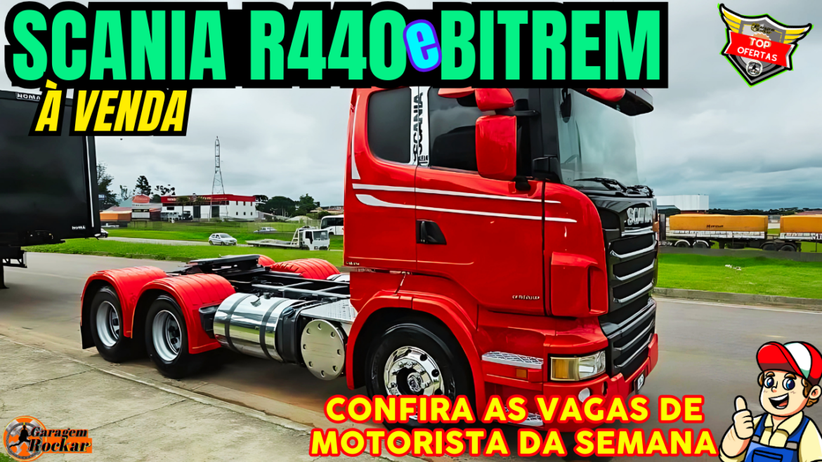 Top ofertas do Rockar cavalo mecânico Scania R440 e carreta bitrem à partir de 230 mil reais, confira as vagas de emprego pra motorista de carreta!