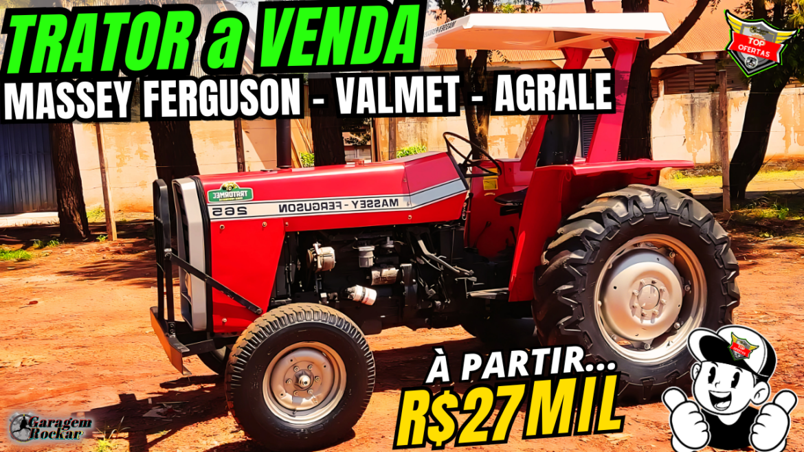 Se você busca um bom trator agrícola de pequeno porte, hoje teremos boas ofertas de trator a venda, entre os modelos teremos MF275, MF265, Valmet e Agrale.